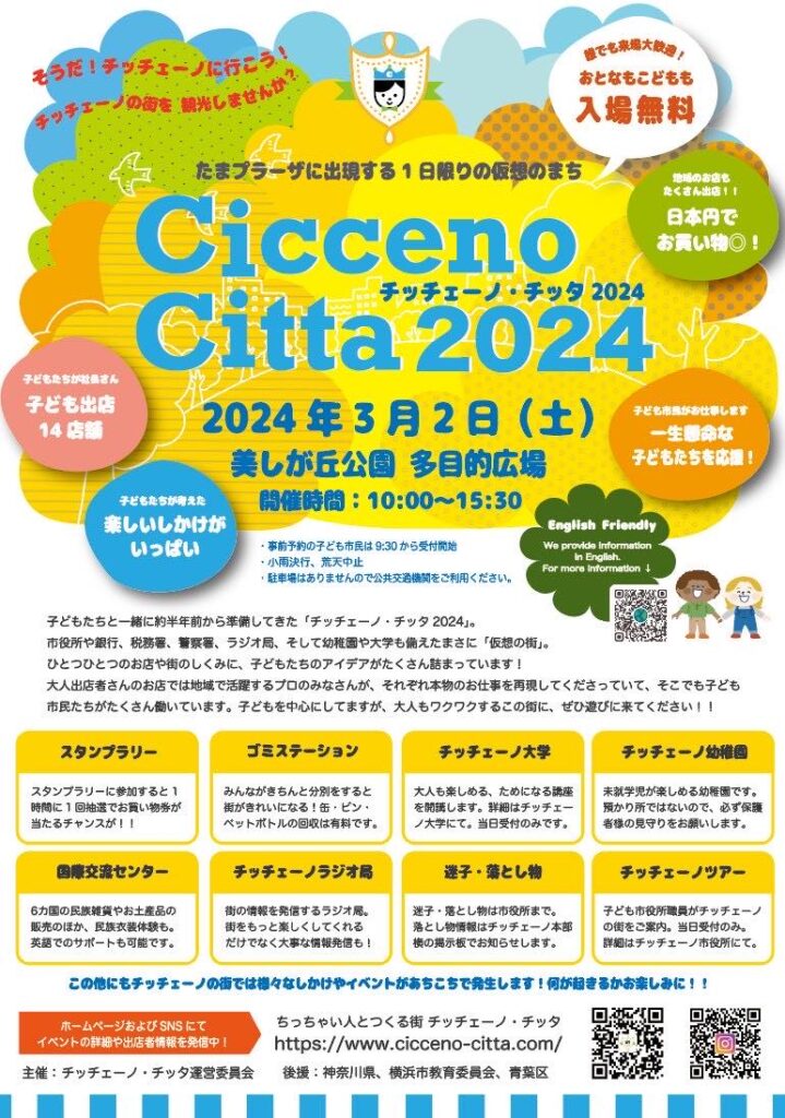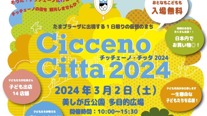 3月2日に田園都市線たまプラーザにある美しが丘公園多目的広場(野球グランド)で開催されるキッズタウン、「チッチェーノ・チッタ」
