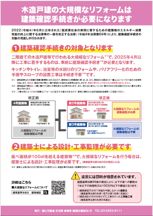新築住宅はもちろんのこと、リフォームについても一定条件以上の工事について建築確認申請及び監理、完了検査が必要になったことをご存知でしょうか。